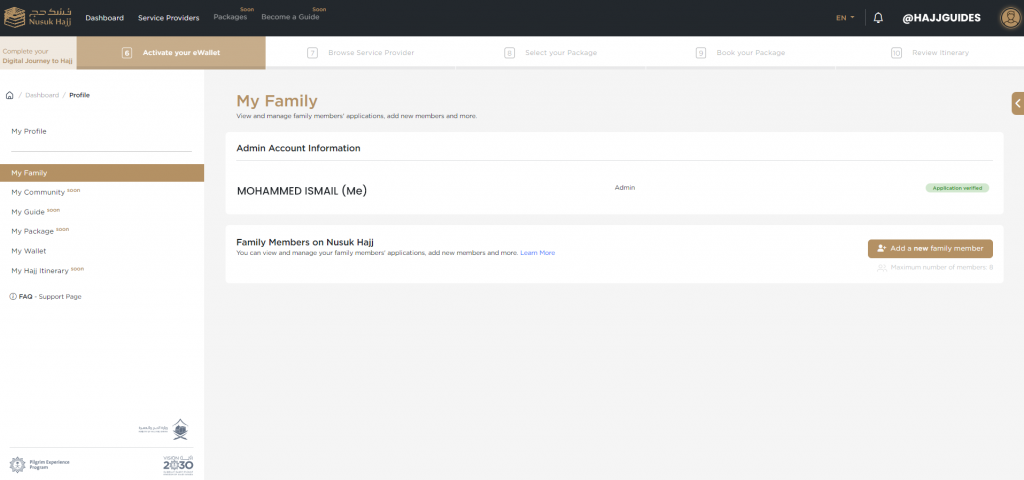 - You will be able to add companions (family members, Mahrams & dependents) to your profile later. This will allow you to perform Hajj together.