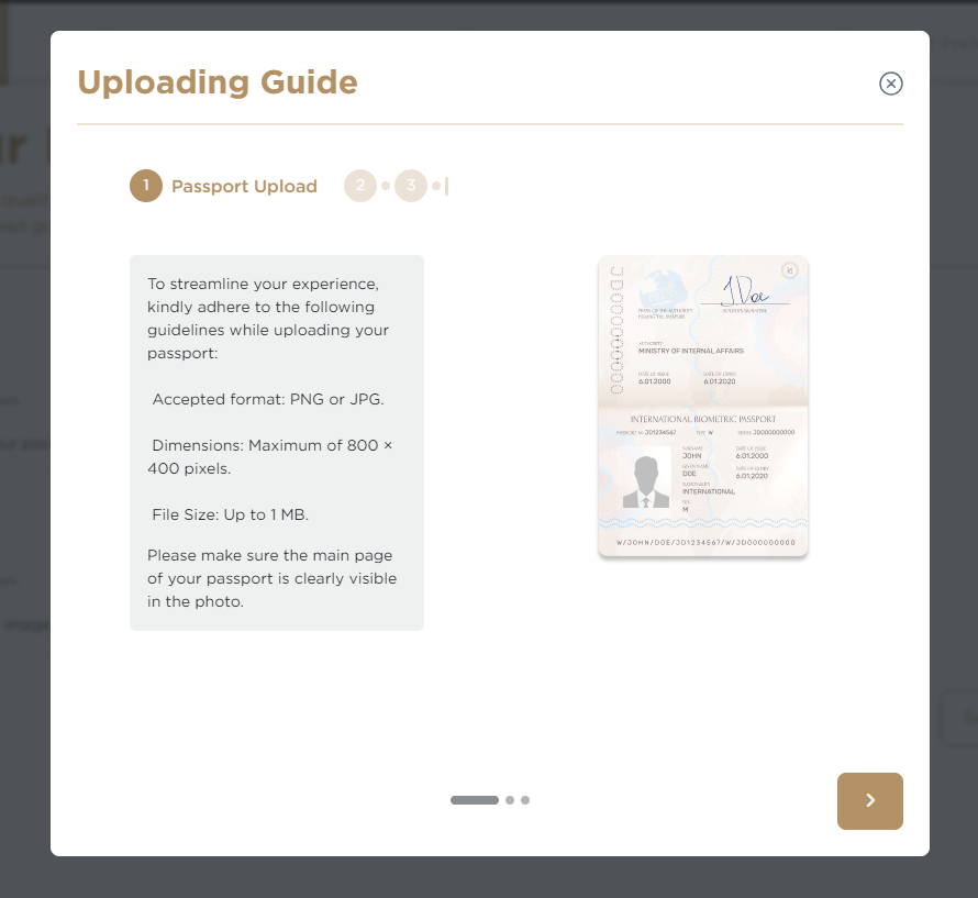 (1) Your Passport and (2) Passport Photo and (3) British Residency Permit – if applicable (see guidance on file dimension and file size for each item below)