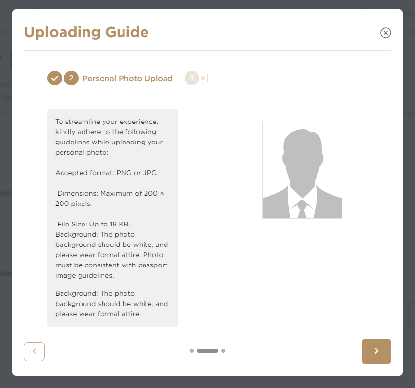 Personal Photo background must be white and in modest clothes.