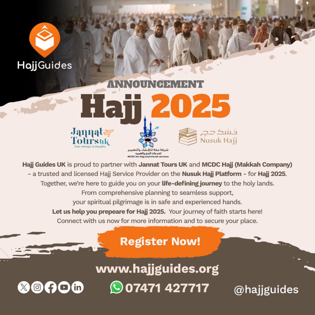 We’re thrilled to announce that Hajj Guides UK are now official guides for MCDC Hajj (Makkah Company), bringing you an unparalleled opportunity to embark on the ultimate journey of a lifetime.